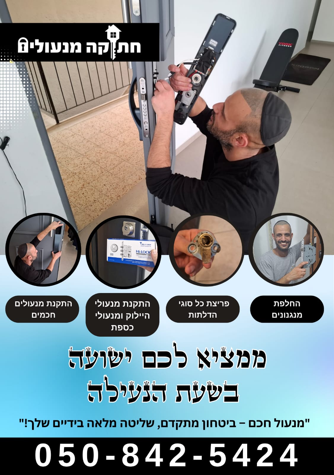 בין אם אתם צריכים התקנת מנעולים חכמים, החלפת צילינדר, תיקון דלת או הזמנת פורץ מנעולים למקרה חירום, תקבלו מענה מהיר, מקצועי והוגן עם שירות אישי לאורך כל הדרך. למשל, במקרים דחופים אני מסביר כבר בשיחה הראשונית מה צפוי לקרות; לאחר מכן אני מגיע עם הציוד המתאים, ולכן אפשר לטפל בתקלה במהירות ובצורה מסודרת. בנוסף, אם יש כמה אפשרויות, אני מפרט את ההבדלים כדי שתוכלו לבחור נכון.